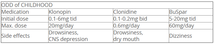 | Medication | Klonopin | Clonidine | BuSpar |