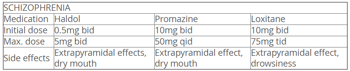 | Medication | Haldol | Promazine | Loxitane |
